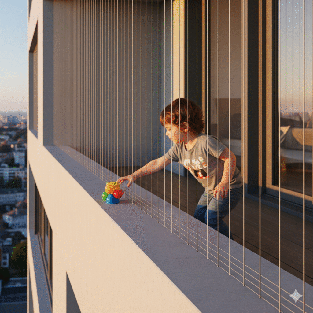 Durable SS 316 cables, rustproof, child & pet safe. Ideal for apartments and high-rise balconies.